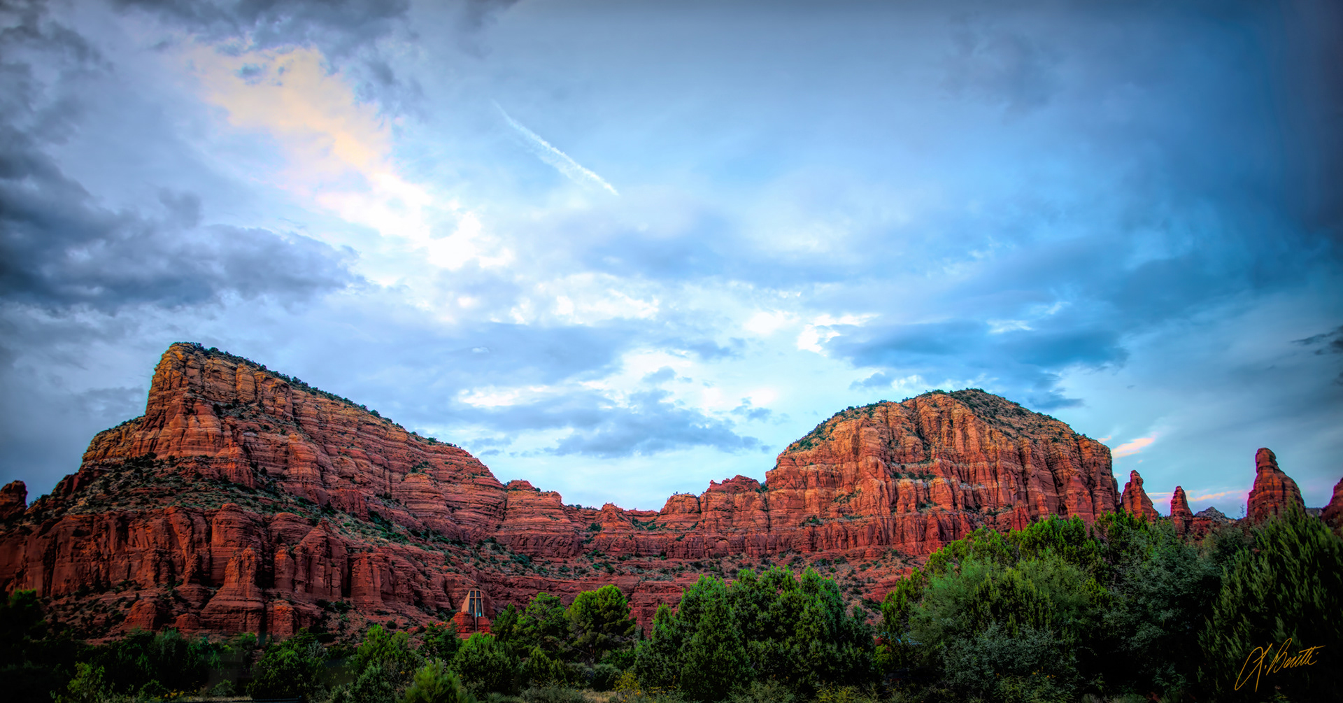 This beautiful sky surrounding the rocky pillars that surrounds the Chapel of the Holy Cross brings out the spiritual setting created by the Divine.